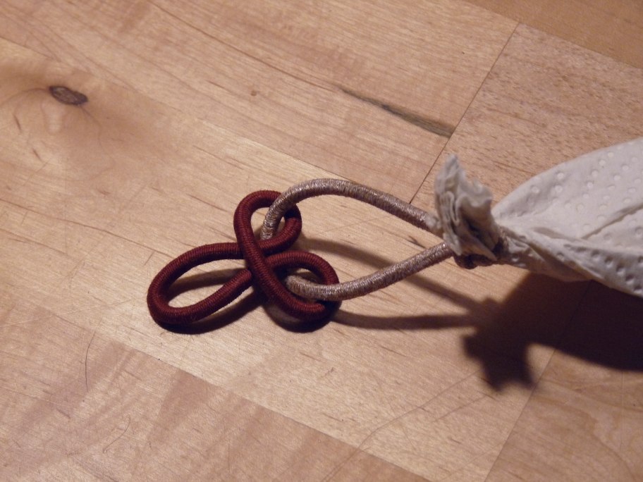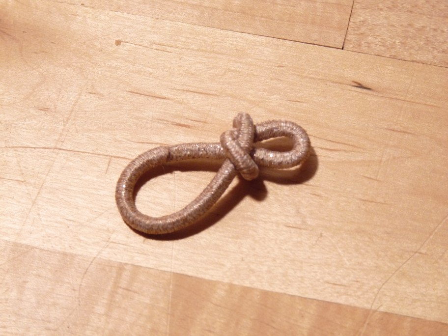 Zwei der Haargummis mit einer Schlaufe versehen.